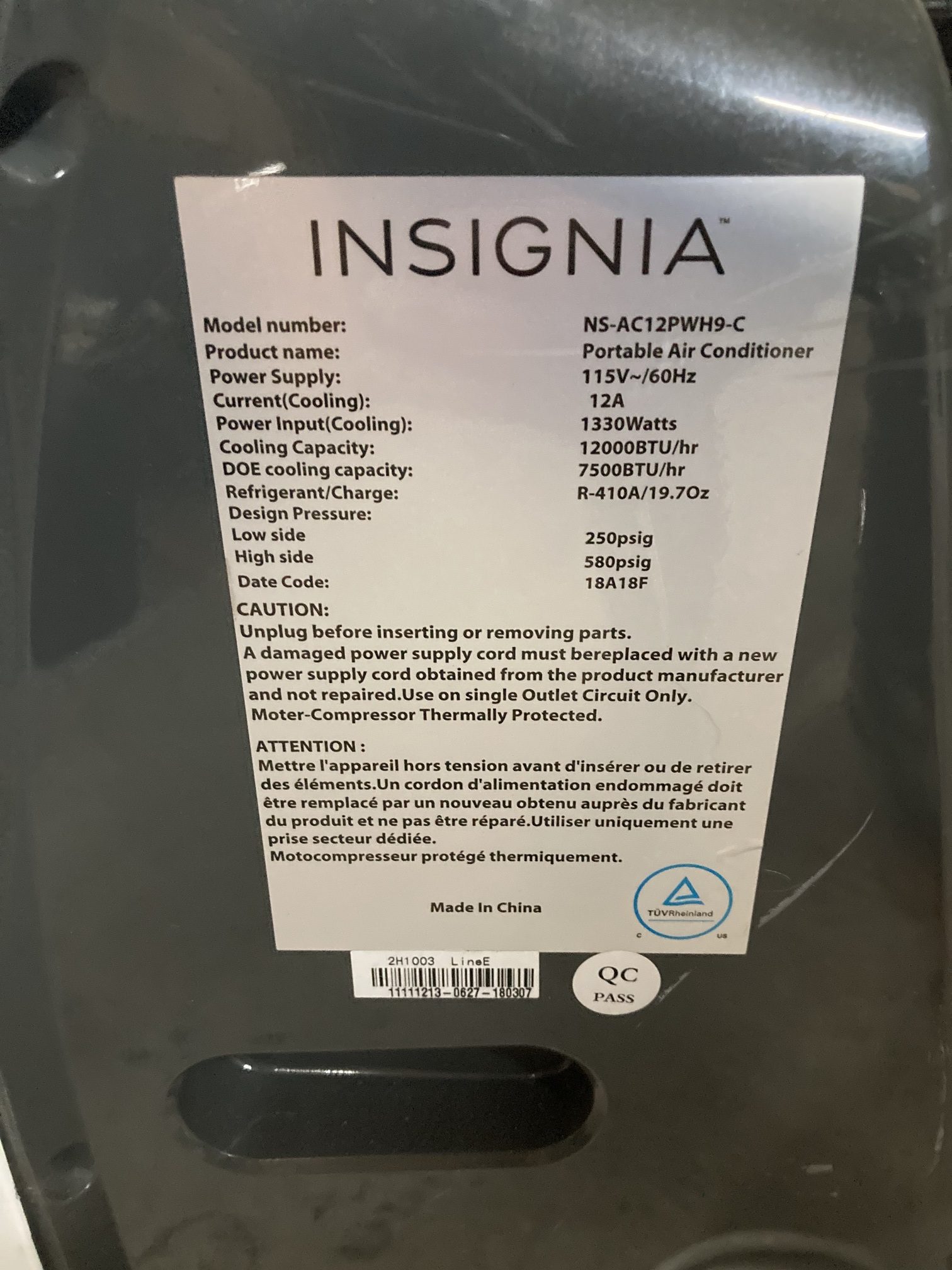 Insigna air climatisé portable modèle NS-AC12PWH9-C