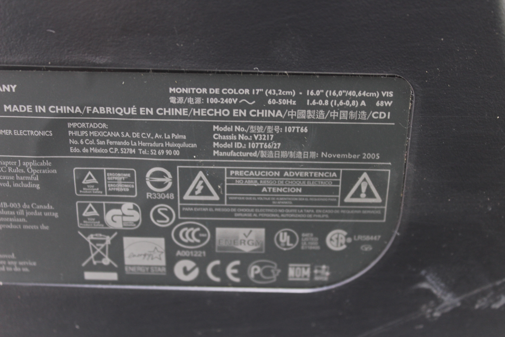 $15.00Philips 17” CRT Monitor – Moniteur Cathodique VGA – Modèle 107T66