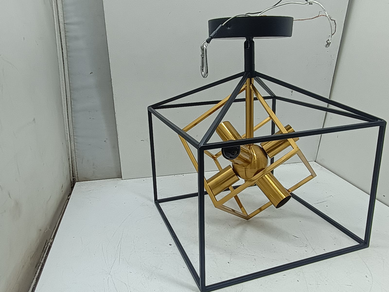 Modern and elegant ceiling light with a sleek black and gold design. Perfect for adding a stylish touch