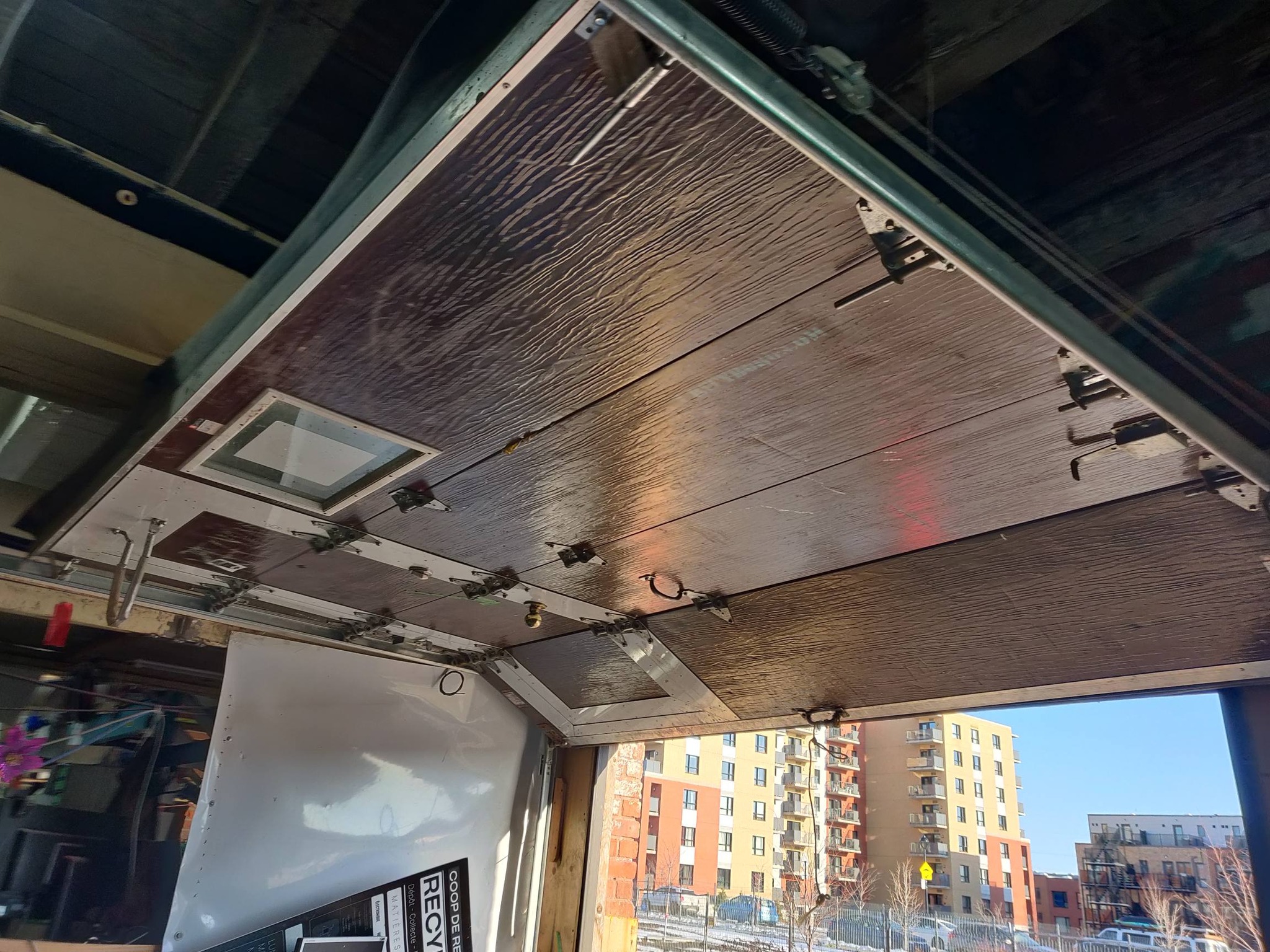 Porte de garage escamotable avec rails et quincaillerie