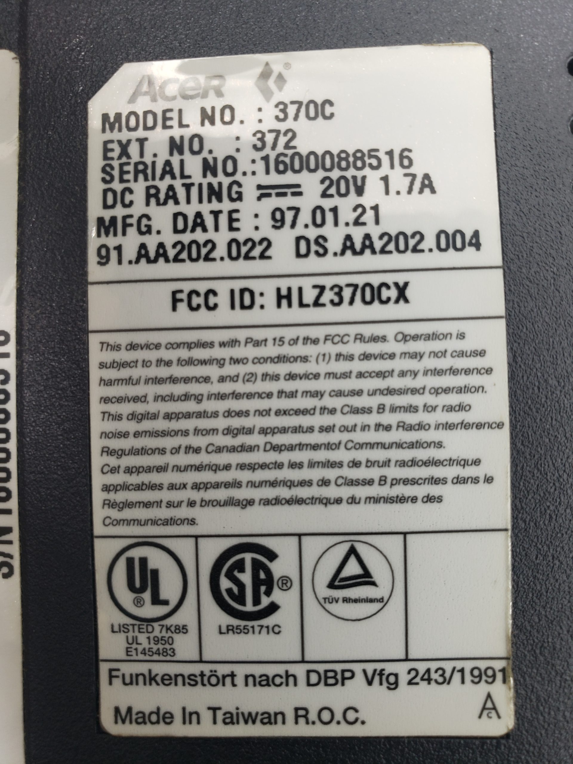 $50.00Vintage ACER note light – model 370c – defective screen