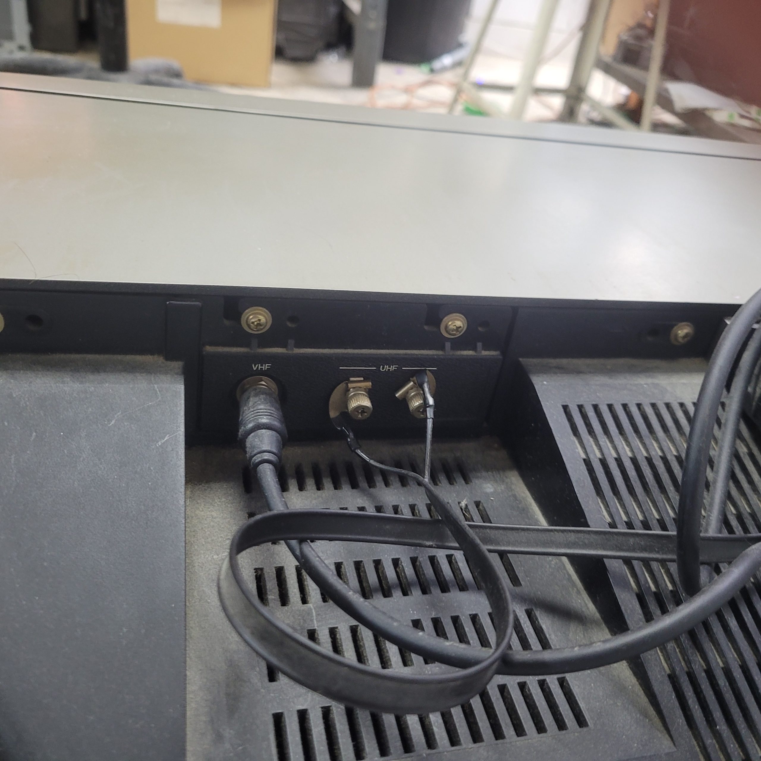 La télé n’a pas d’entrée vidéo, seulement antenne et VHF. Il faudrait un modulateur RF pour l’entrée vidéo.