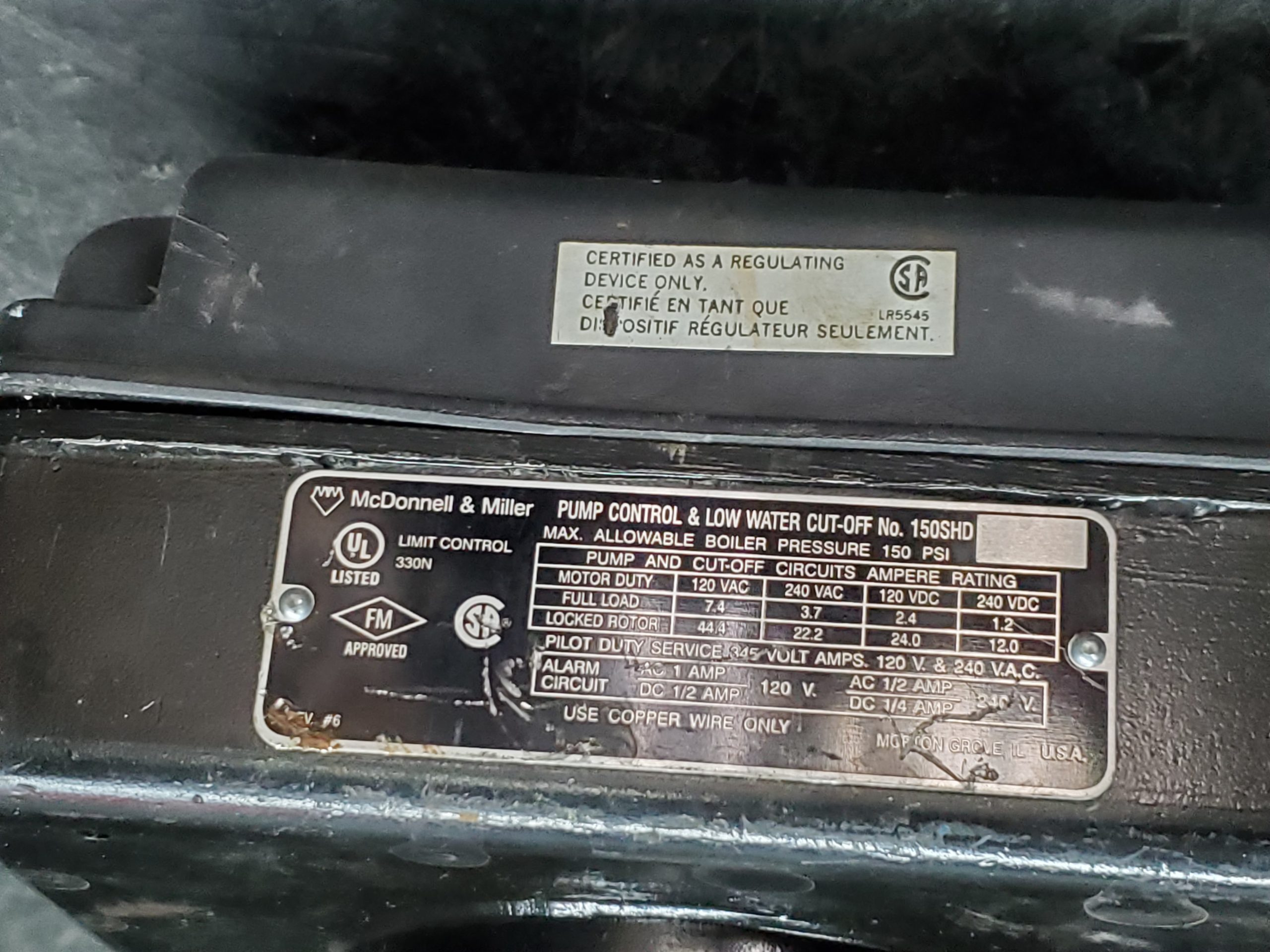 McDonnell & Miller 150S-HD Pump Control Head Mechanism w/ Snap Switch (FOR PARTS ONLY)