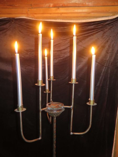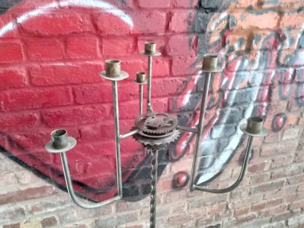 $15.00Chandelier en acier recyclé pour 6 bougies – 58″ de haut