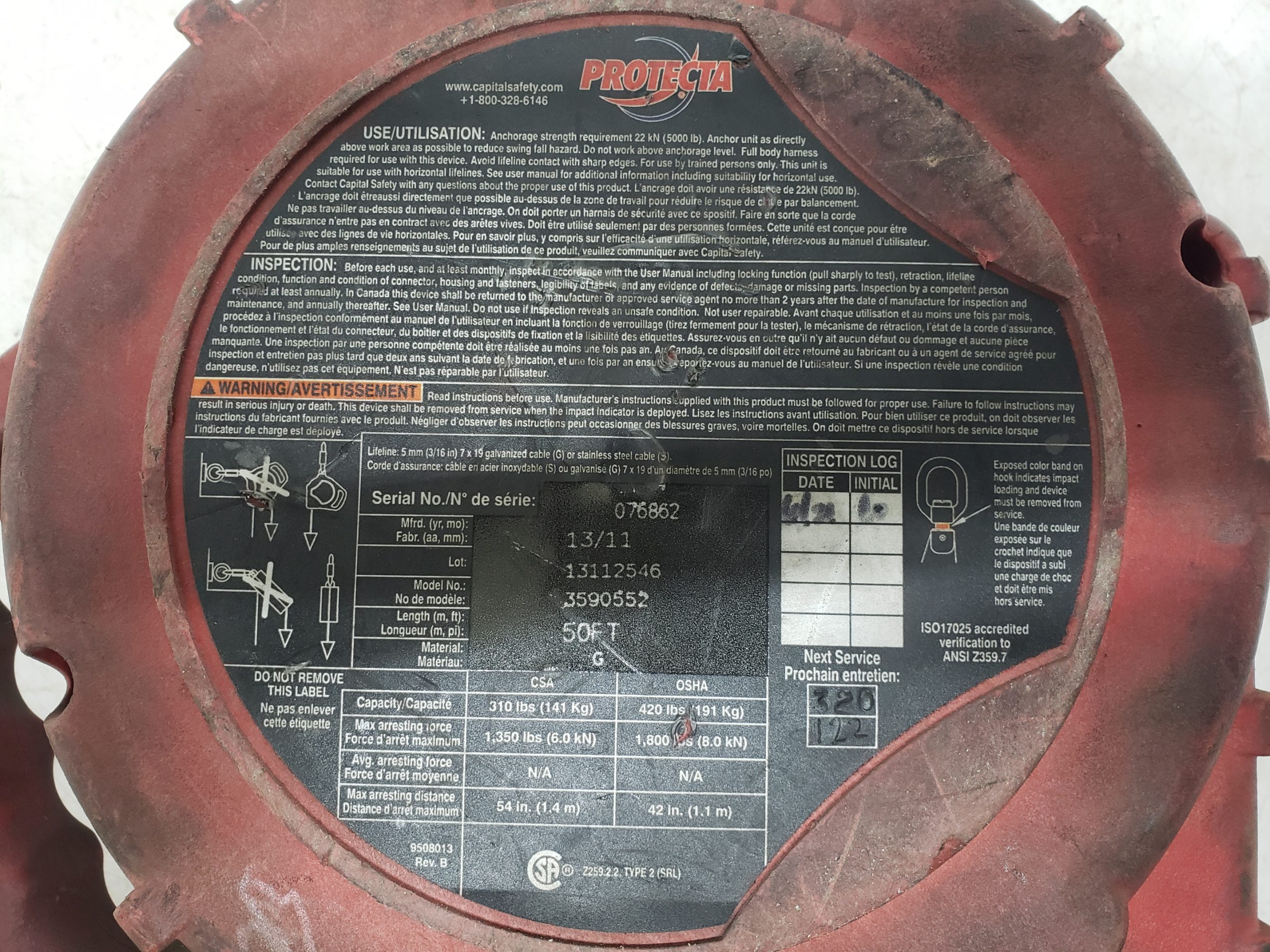 Ligne de vie rétractable 50 pieds – 3M Protecta Fall Protection Rebel self retracting lifeline